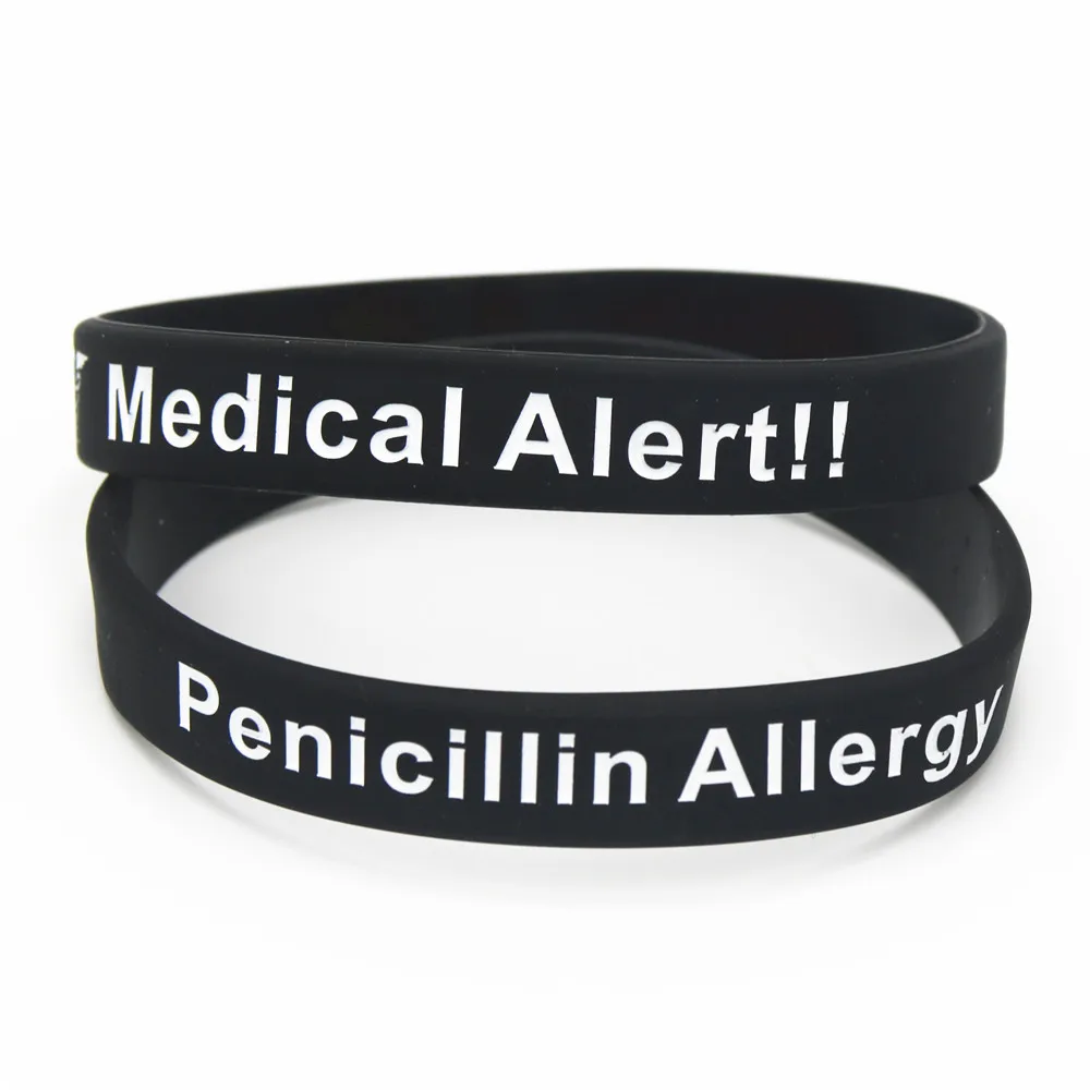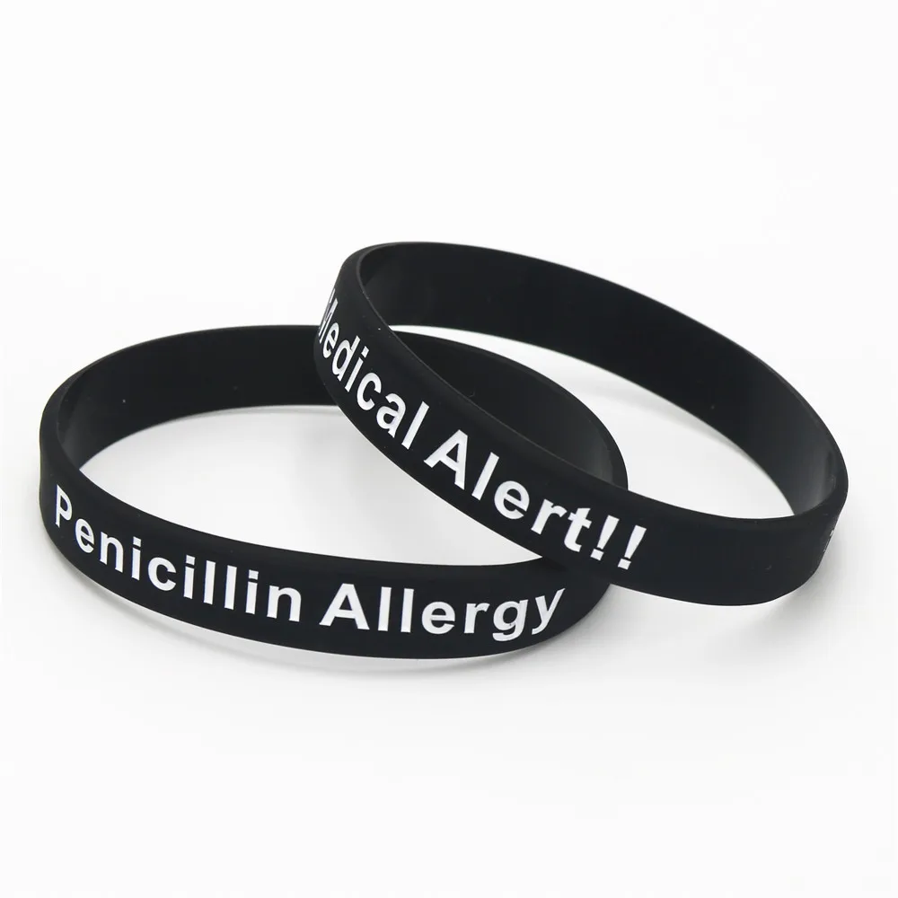 Voucher 1PC Hot Sale Bracelets Medical Alert Penicillin Allergy Silicone Wristband Black Armband Nurse Bang