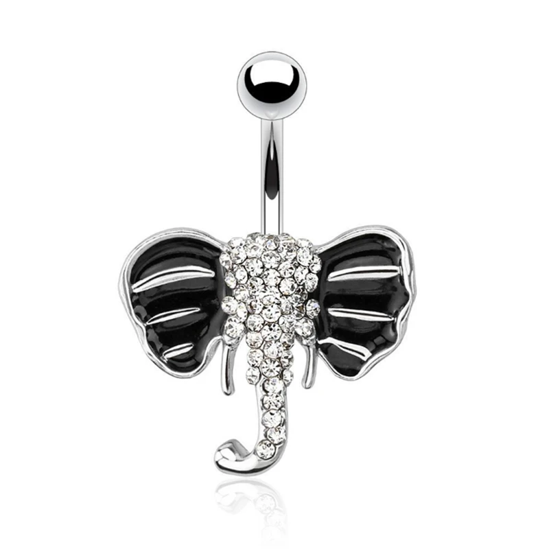 Order new hot medical stainless stee cute elephant navel rings double person crystal belly button rings s