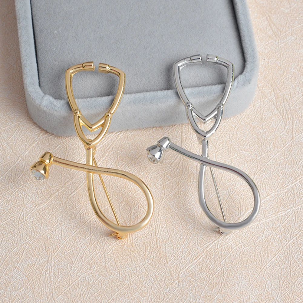 Cashback New Creative Unisex Medical Stethoscope Rhinestone Brooch Pin Clothes Collar Jewelry